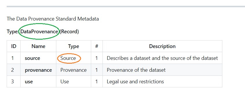 Therefore, I Propose that the data provenance specification document and model schema use named types to define content.